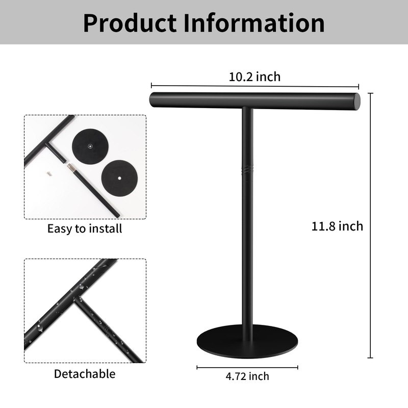 Hoomast Hand Towel Holder, Towel Rack for Kitchen Bathroom Bedroom Vanity, Removable T-Shape Free Standing 1 Pack Black