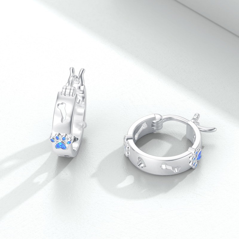 - Stylish Design: These hoop earrings feature a charming paw print design with blue opal accents for a touch of elegance.