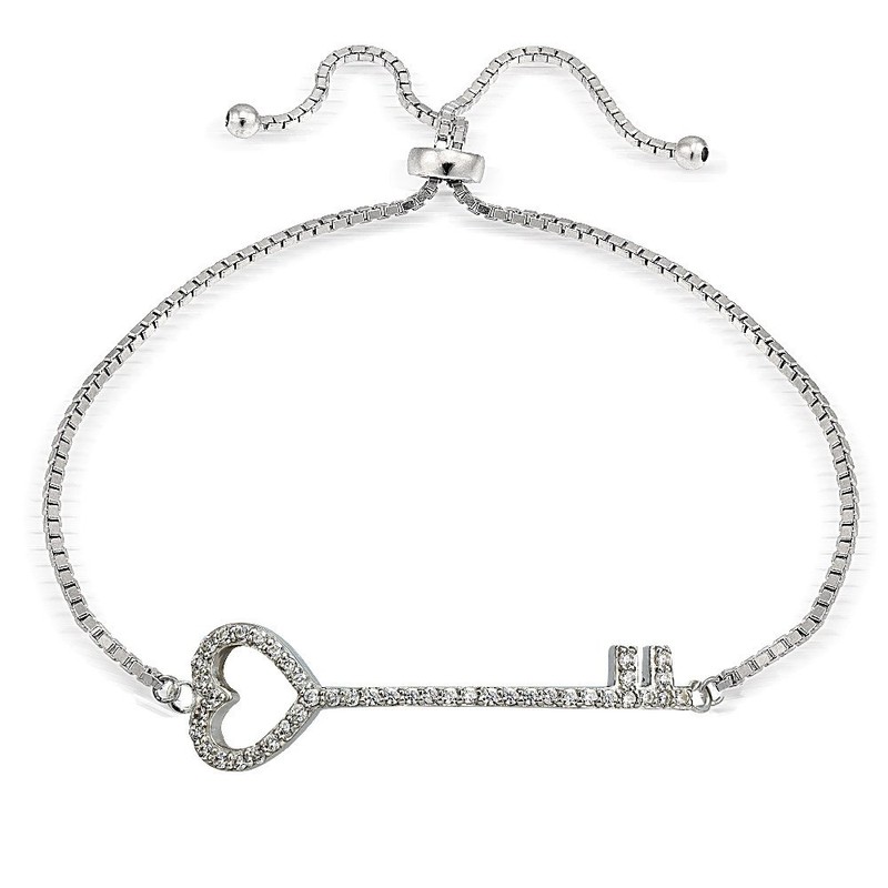 Hoops & Loops - Pulsera Ajustable de Plata de Ley con circonita cúbica y corazón