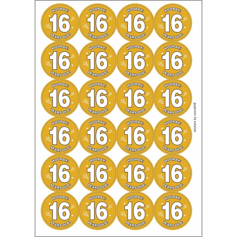 Hooray 16 Sixteen Sixteenth 16th Birthday Circular Matt Paper Stickers A4 Sheet of 24 (Each Sticker is 45mm Diameter)