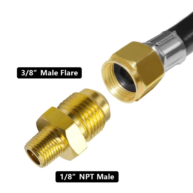 - Ajuste estándar: se adapta a tanques y cilindros de gas propano QCC1/Type1 LP y conexión hembra de 3/8 pulgadas. Viene con accesorio de tubería macho de 3/8 pulgadas x macho NPT de 1/8 pulgadas. Ajuste perfecto para parrillas de gas, estufas de gas, freidoras de pavo, cocina, fogata, calentador y otros electrodomésticos de propano.