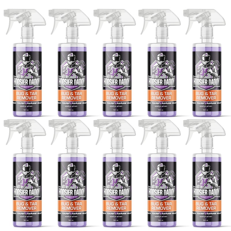 Hoosier Daddy 16oz Car Bug & Tar Remover - Fast-Acting Formula Dissolves Tough Bugs, Tar, & Sap - Easy Spray-On, Wipe-Off Solution for a Spotless Polished Finish(10-Pack)
