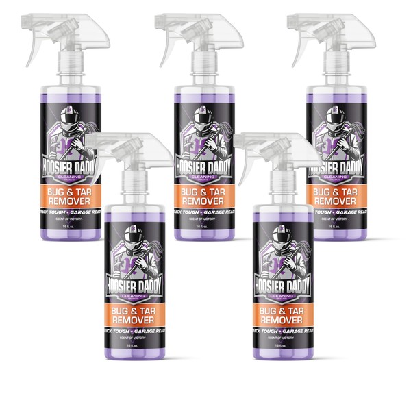 Hoosier Daddy 16oz Car Bug & Tar Remover - Fast-Acting Formula Dissolves Tough Bugs, Tar, & Sap - Easy Spray-On, Wipe-Off Solution for a Spotless Polished Finish(5-Pack)