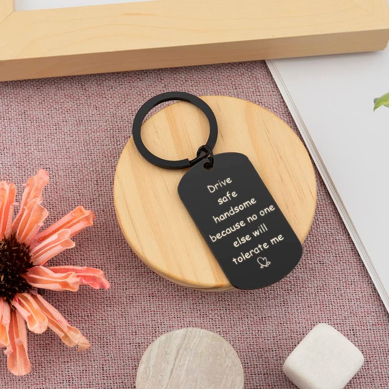 - 【Drive Safe Keyring Gifts】"Drive safe handsome because no one else will tolerate me." The keyring is especially suitable as gifts for boyfriend, gifts for husband, gifts for dad, son, brother, fiance, fiancee, groom, bridegroom, truck driver to remind them to keep safe when they are driving.