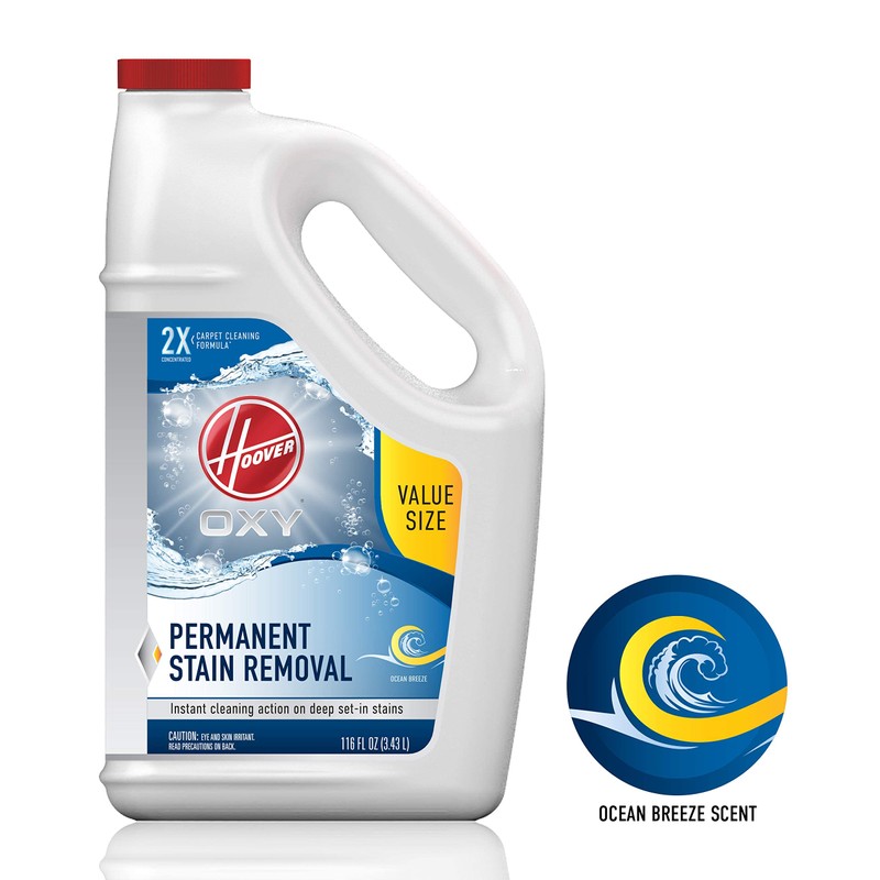 Hoover Oxy Carpet Cleaning Solution is a fast-acting, stain fighting formula that not only attacks, but also breaks down both old and new stains for easy removal. This solution uses oxy technology to neutralize pungent odors and leave your carpets smelling fresh and clean with an ocean breeze scent. Win against life’s toughest stains when you experience the exceptional punching power of Hoover Oxy Carpet Cleaning Formula.