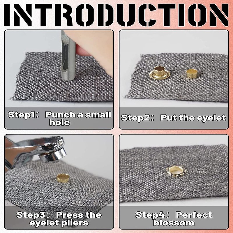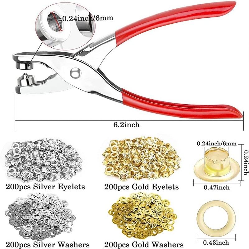 Hopbucan Eyelet Pliers Kit, 1/4 6 mm Nozzle Tool Kit with Metal Eyelets with Washers, Eyelet Eyelets