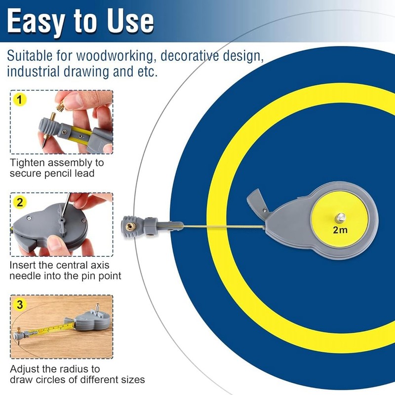 - The operation is convenient and a good helper at work[Portable Rotape Tape Measure Compass]: the design is compact and easy to carry and store; Whether you are an architect, artist or woodworker, you can carry this drawing compass around conveniently