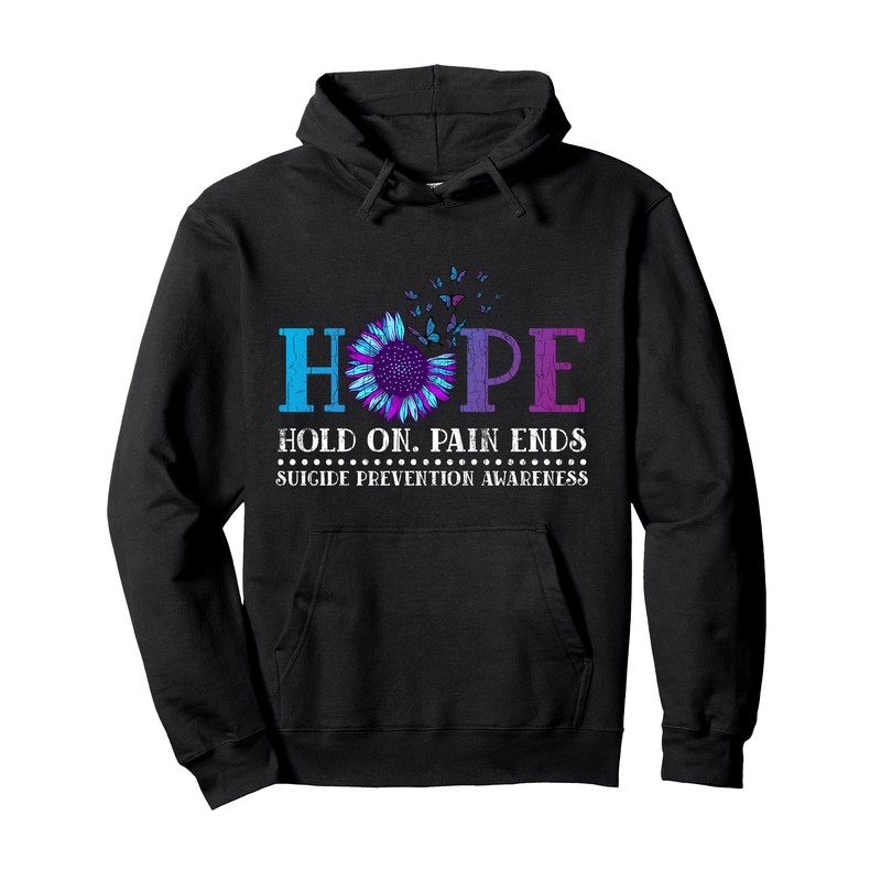 Hope Hold On Pain Ends Suicide Prevention Awareness Graphic Pullover Hoodie