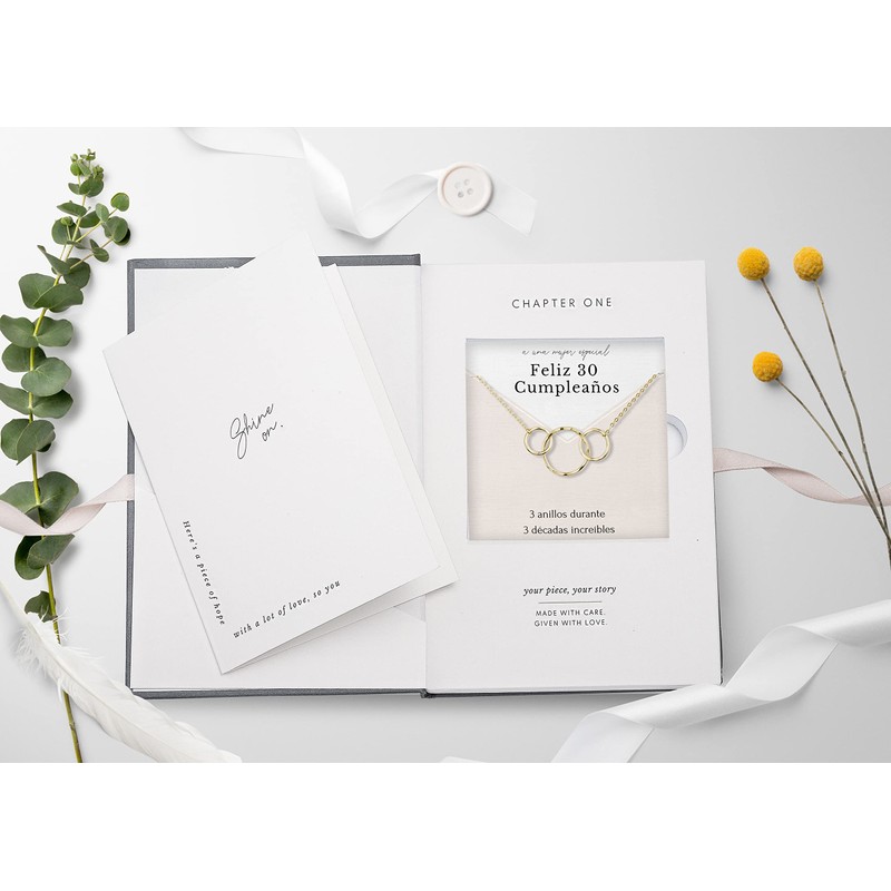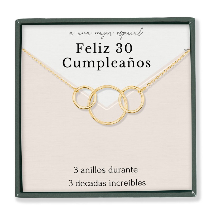 HOPE LOVE SHINE 30 Cumpleaños Regalo para Mujeres, Daughter, Sister - 30th Cumpleaños Collares, Jewelry 16+2", 14k Gold Plated Sterling Silver, 3 Interlocking Rings