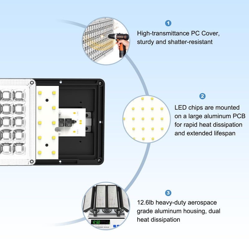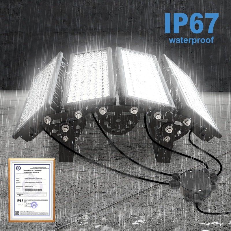 - Durable and Weather-Resistant: Stadium flood light is made of thickened aircraft-grade aluminum and equipped with shatterproof PC lenses. Enhanced heat sink prevents overheating. IP67 protection rating, reliable even in rain, snow and dust