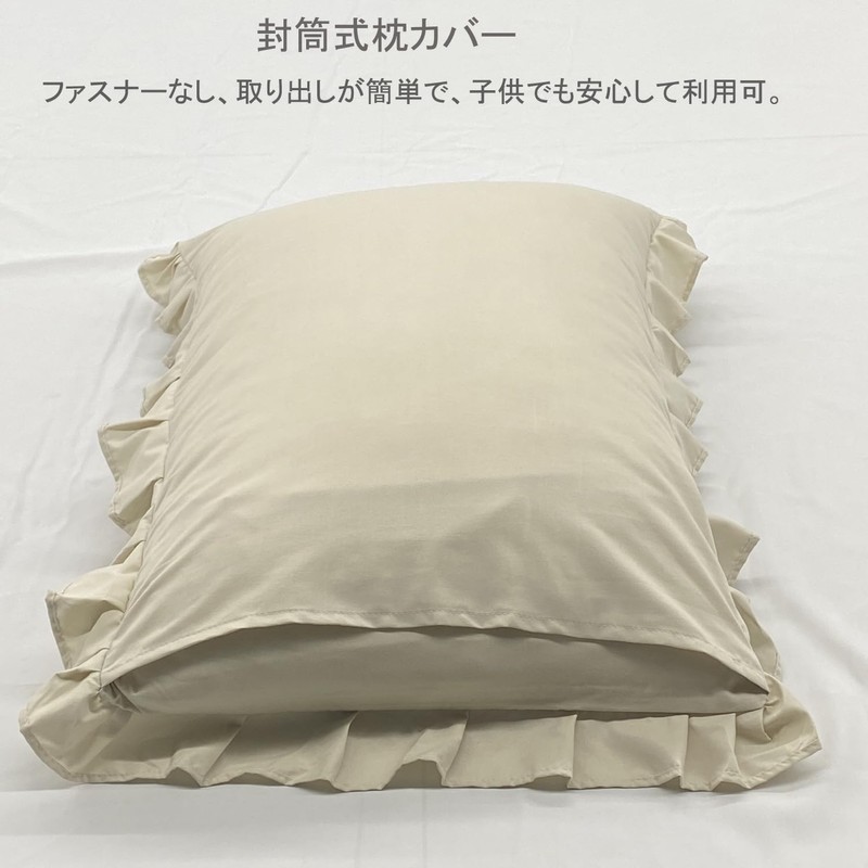 Hopeholic Pillowcase Set of 2 Pillow Cases 43 x 63 Cute, Ruffle, Seersucker Fabric, Envelope Type, Roll, Gentle Touch, Soft, Washable, Quick Drying, Peach Skin Treatment, Four Seasons, Beige, Ruffle