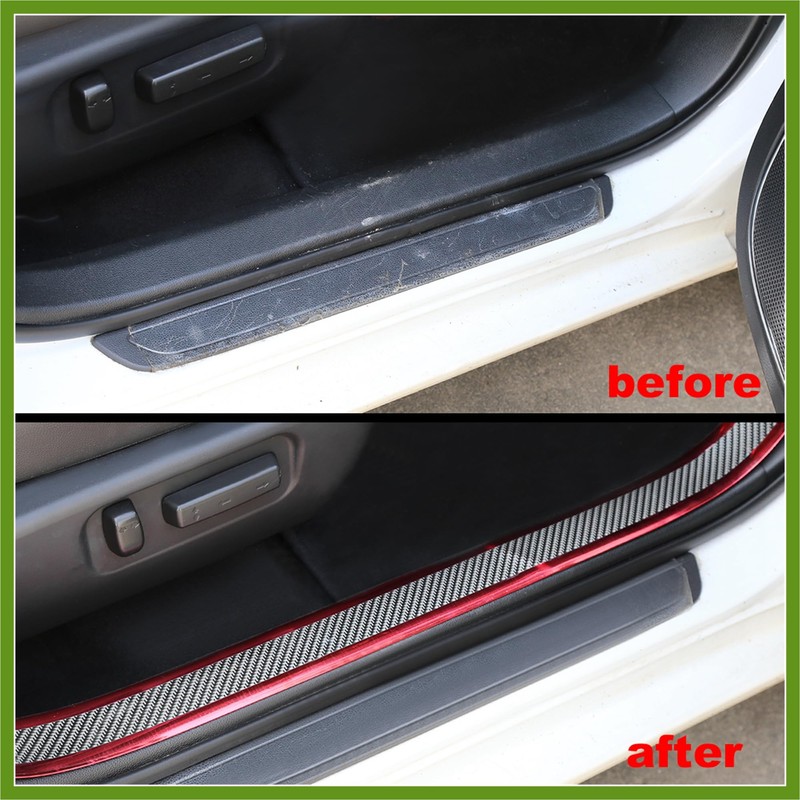 • Compatible: Easy to bend, cut and fold, flexible enough to meet your need. Easy to install with adhesive. Clean the door sill before installing, then stick the sticker carefully to the sill and make it smooth. Don't need any other tool, no damage to your car.