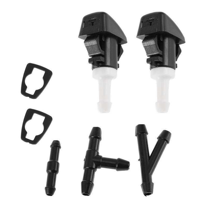 - Package Contains:1 Set Windshield Washer Nozzles with 1 Pcs Y Hose Connector, 1 Pcs T Hose Connector, 1 Pcs Straight Hose Connector, 2 Gasket