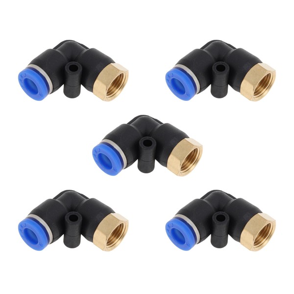 HOPESPANNER Push to Connect Air Fittings 1/4" 90 Degree Female Thread Connector Plastic Metal 1/8" BSPT 5 Pcs Black Gold Tone