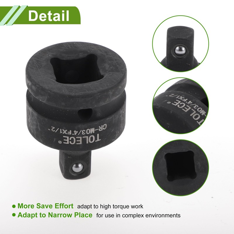 - Material Specification:3/4"to1/2" drive socket reducer adopting CR-MO material, reinforced it's strength and durability for multiple use to withstand torque. Portable to easy carry, powerful solution to your problem.