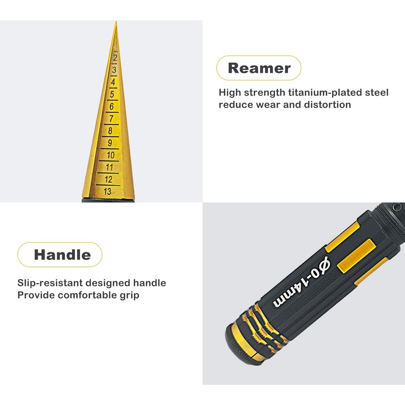 ◆ El escariador está hecho de acero chapado en titanio de alta resistencia, reduce el desgaste y la distorsión.