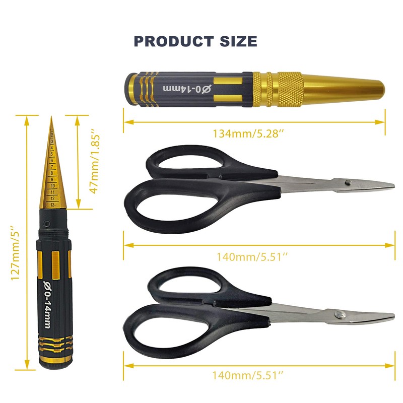HOPLEX RC Body Reamer 0-14mm Hole Puncher with Sleeve and Curved Scissors & Straight Scissors Set RC Car Body Mounting for RC Car Truck Bodyshell Hobby Repair Tools