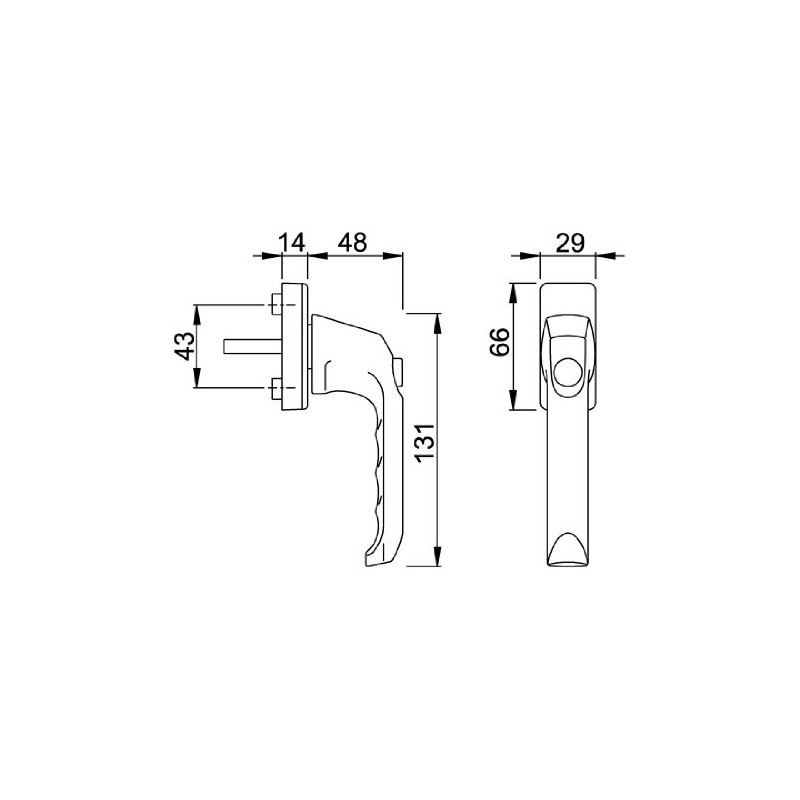 - Kit: single sided; factory number: 013SV/U34; short description: window handle with push button, piece