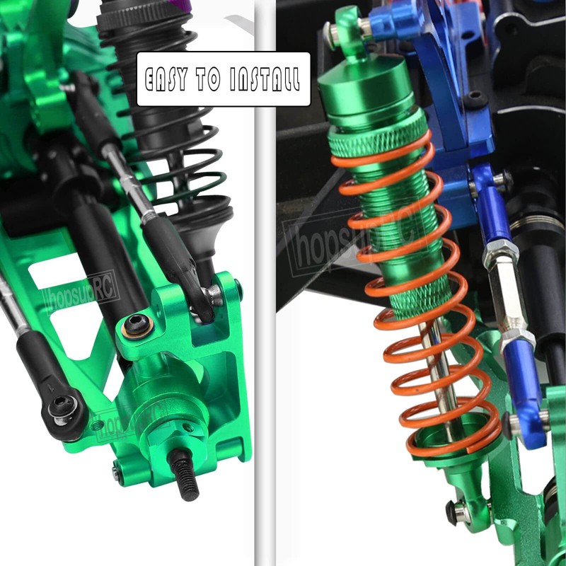 hopsupRC Upgrades Part for 1/10 Slash/Rustler/Stampede/Hoss 4x4 VXL 4wd,Full Metal Big Bore RC Shock Absorber & Alloy Steering Blocks Caster Blocks C-Hubs Stub Axle Carriers,Wheel Hex,Green