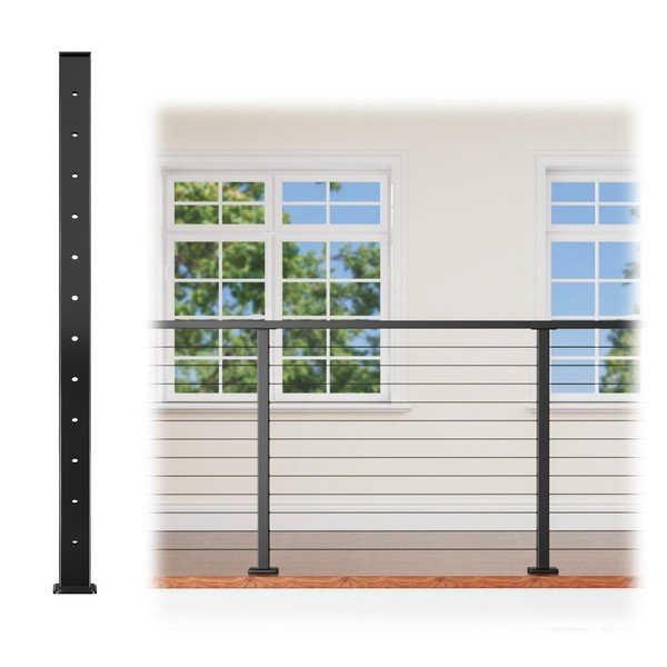 - 42" Level-Drilled Post: This 42" black railing post is provided for residential cable railing project, helping you form a qulity and labor-saving 42" height cable railing system. You can enjoy a perfect horizontal railing section on your home