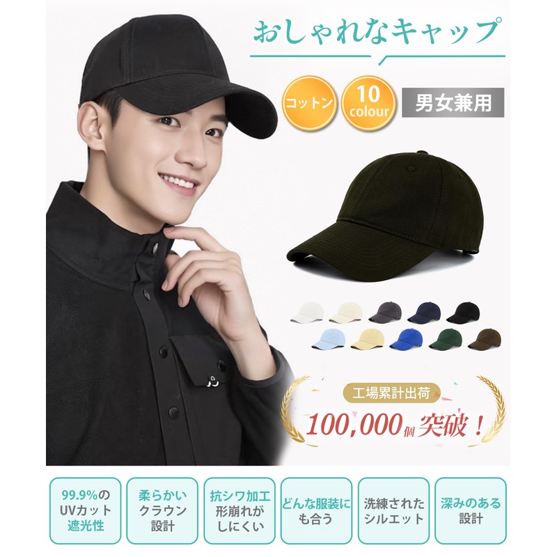 - 【究極のフィット感】:コットン素材のベースボールキャップは快適なかぶり心地とフィット感にこだわりました。帽子のクラウン部分に着目し、あなたにぴったり合う形状を実現しました。かぶり心地を頭の上のソフトキャップの部分に着目し、最良の幅と深さを考え抜きまして、頭の圧力を減らすように設計されている帽子。生地は柔らかくて、手触りがいいです。日本人の頭の形状に合わせて、キャップのフロントやサイドの長さを調整し、最適な深さと幅を追求。帽子のクラウン部分に着目し、あなたにぴったり合う形状を実現しました。