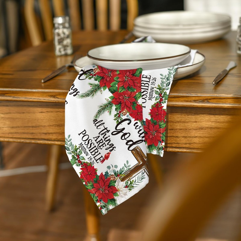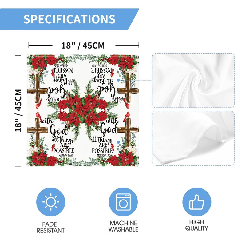 Horaldaily Christmas Cloth Napkins 18 x 18 Inch, Holy Crucifix Wild Flower Birds Party Dinner Decoration Washable Napkins Set of 6
