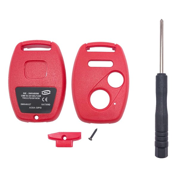 Horande Keyless Entry Replacement Key Fob Cover Case Shell fits for Honda Accord Civic EX CR-V Fit Odyssey Pilot Ridgeline CR-Z (Red)
