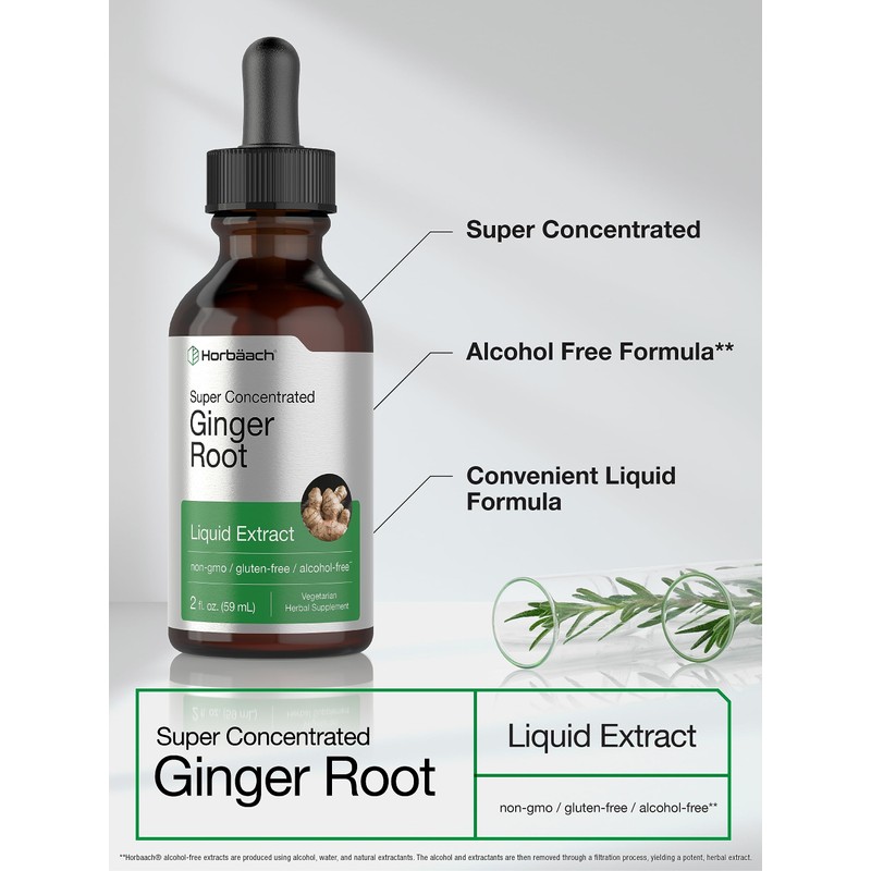 What is Ginger?Ginger has been a staple plant of traditional Chinese herbal practices for centuries. It's beloved for its fresh taste in foods and known for its naturally occurring antioxidant compounds. It originated in Southeast Asia and has now become a timeless herb with powerful benefits.How to get Ginger:This classic ingredient is found in a variety of products like pills, capsules, gummies, bulk powder, dried candy, lozenges, chewable tablets, liquid drops, essential oil, tincture, drinks, juice, tea and more. Ginger is also often paired with other spices like Cayenne and Turmeric for optimal support. Looking for the best source of Ginger to add to your routine?Horbaach's Ginger Root Liquid Extract:Horbaach's Ginger Root (Zingiber officinale) provides a super concentrated source of this abundant herb in one alcohol-free Liquid Extract. It's gluten-free and non-GMO, making it a top supplement of choice for adults everywhere. Simply add to water and enjoy!**Horb?ach alcohol-free extracts are produced using alcohol, water, and natural extractants. The alcohol and extractants are then removed through a filtration process, yielding a potent, herbal extract. WARNING: Not intended for use by pregnant or nursing women or persons under the age of 18. If you are taking any medications or have any medical condition, consult your doctor before use. If any adverse reactions occur, immediately stop using this product and consult your doctor. If outer seal is damaged or missing, do not use. Keep out of reach of children. Store in a cool, dry place. Avoid excessive heat. Shake well before using.