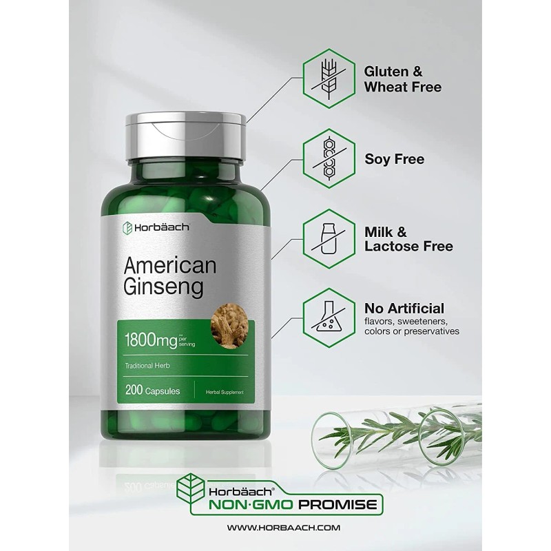 Horbäach American Ginseng Capsules | 1800 mg | 200 Count | Non-GMO | by Horbaach