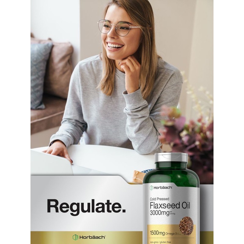 Horbäach Flaxseed Oil Softgels | 3000mg | 300 Count | with Omega 3 6 9 | by Horbaach