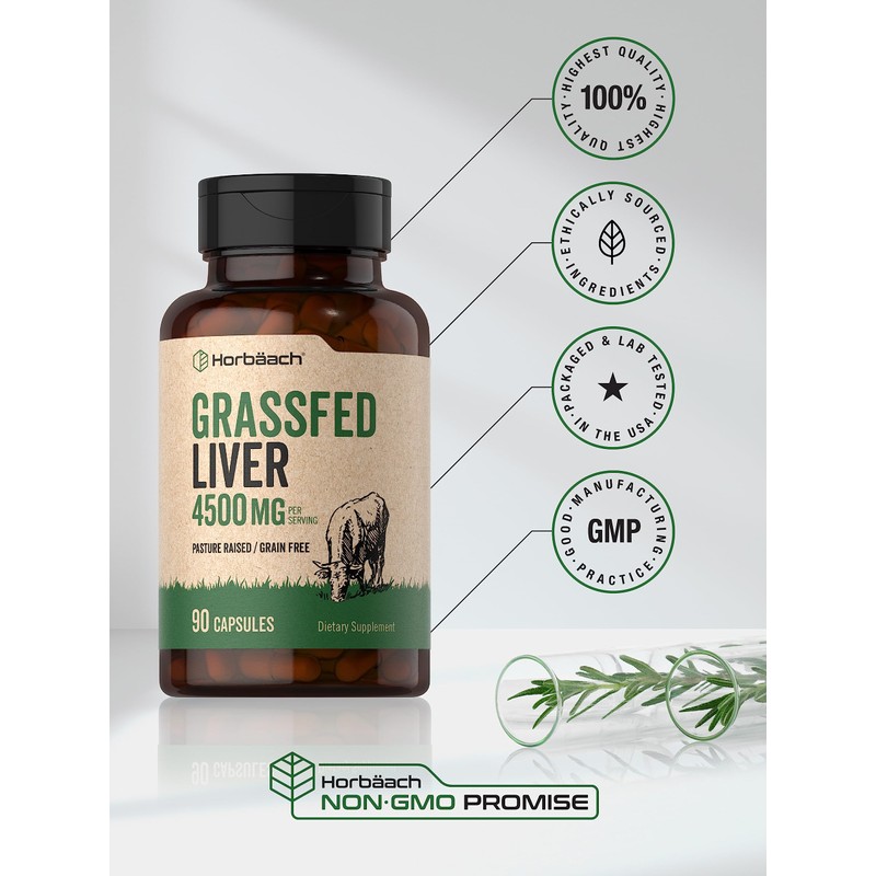 Support your routine now with Horbaach pasture raised and grain free Grassfed Liver! This highly innovative supplement provides 4,500 mg of Grassfed Liver (from Bovine) per serving in quick release capsules. Our gluten-free and non-GMO formula contains no artificial flavor or preservatives, delivering just what you need to meet your supplement goals.
