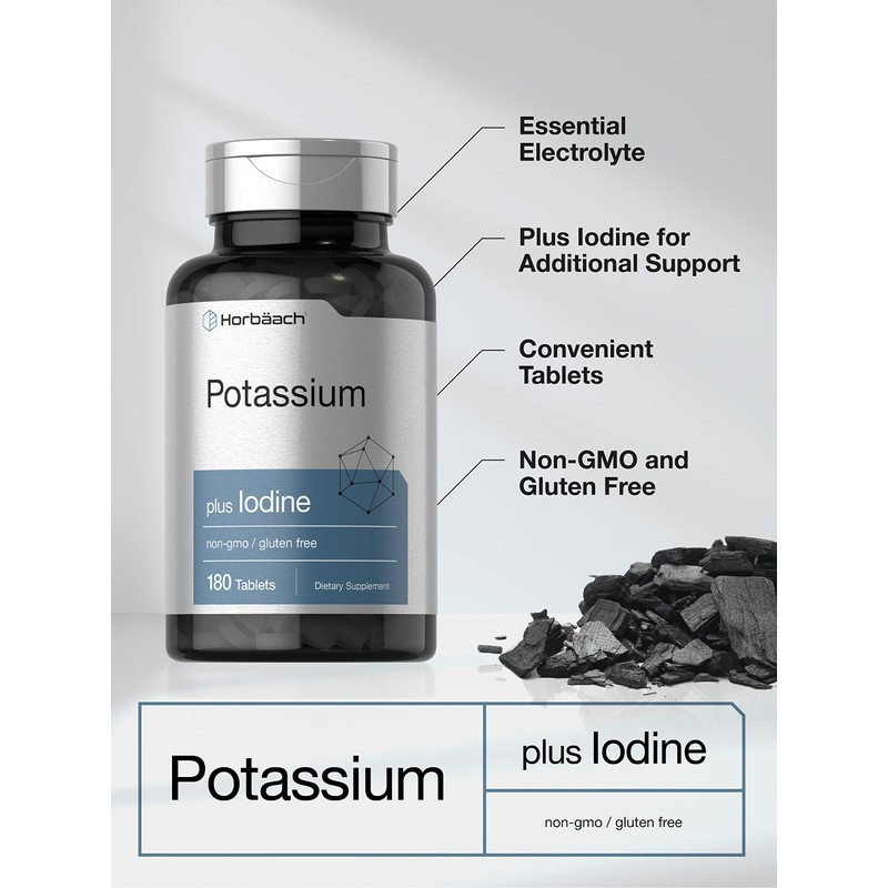 Horbäach Horbäach Potassium Chloride Supplement | Plus Iodine | 180 Vegetarian Tablets | Non-GMO and Gluten Free