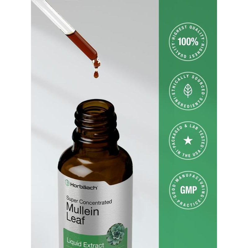 Horbaach Mullein Leaf Extract Drops provide a potent, alcohol-free herbal supplement derived from the leaves of Verbascum thapsus, a traditional herb used for centuries in wellness practices. Rich in naturally occurring plant compounds and antioxidants, Mullein leaf has been valued for its potential to support respiratory and overall wellness.