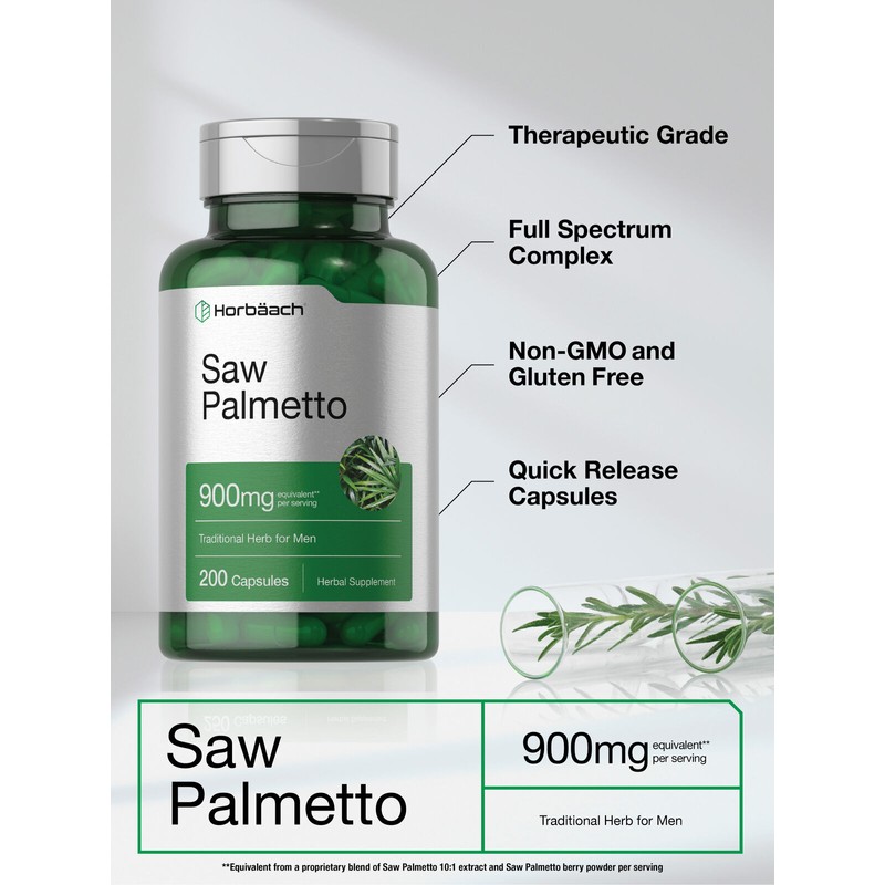 Horbäach Saw Palmetto Extract 900mg | 200 Capsules | Non-GMO, Gluten Free | by Horbaach