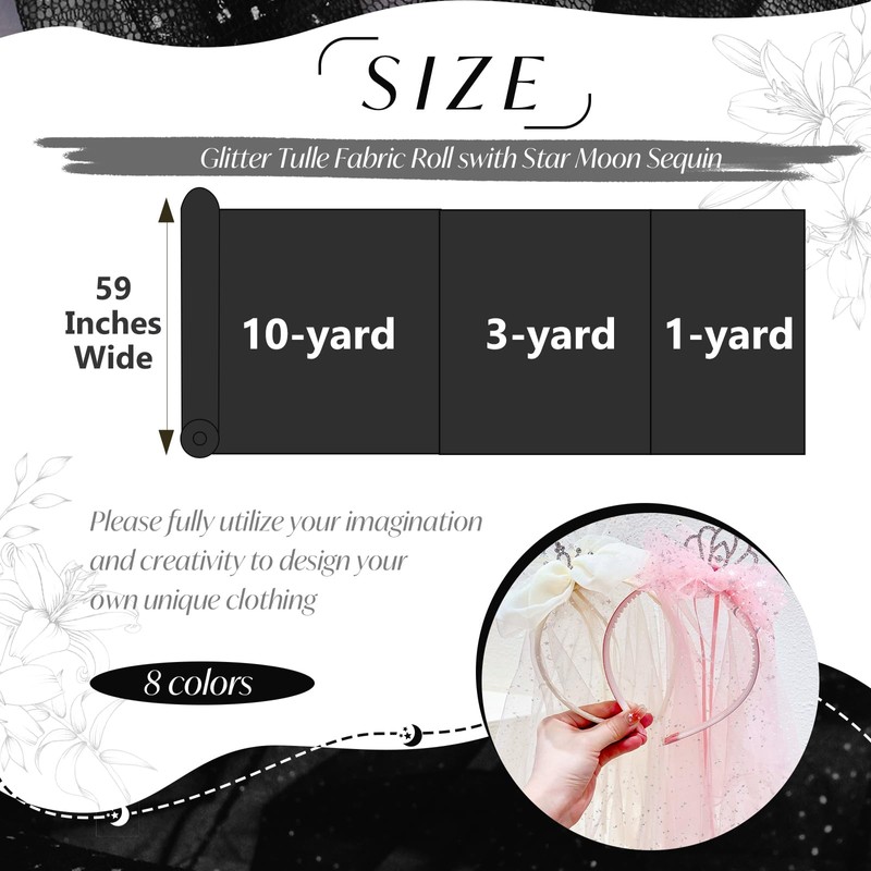 - ❤Wide Application Scenarios: This black glitter tulle is suitable for various DIY crafts, such as making tutu skirts, dresses, garlands, hair bows, bows, headwear, chair sashes, table decorations for wedding or banquet and more.