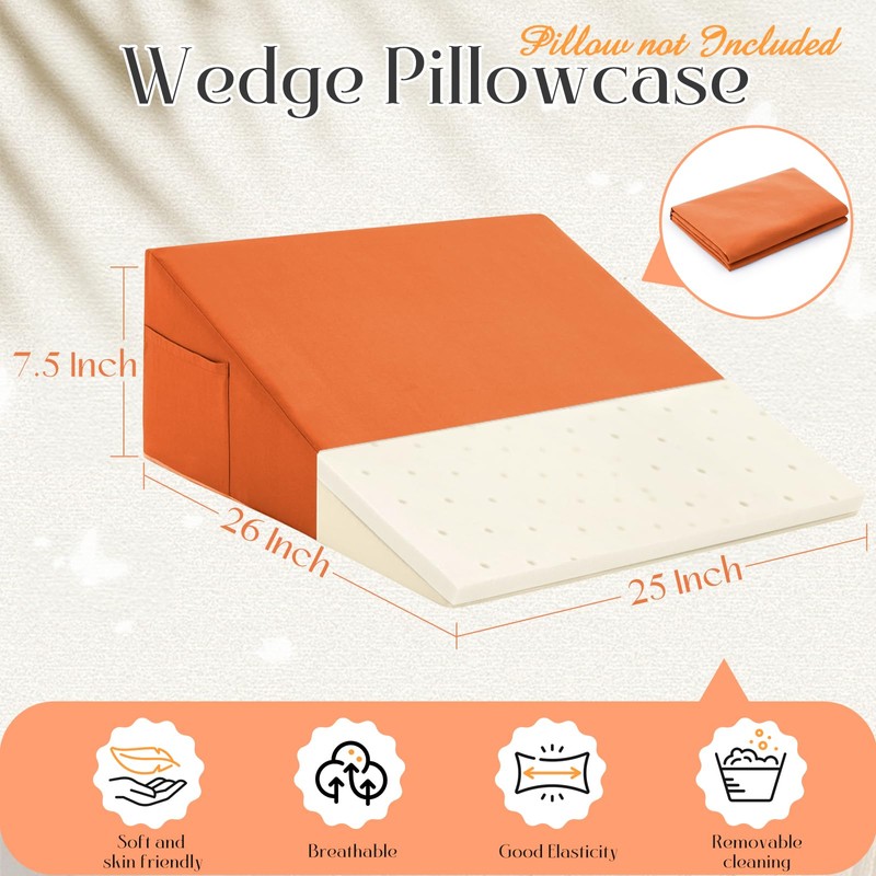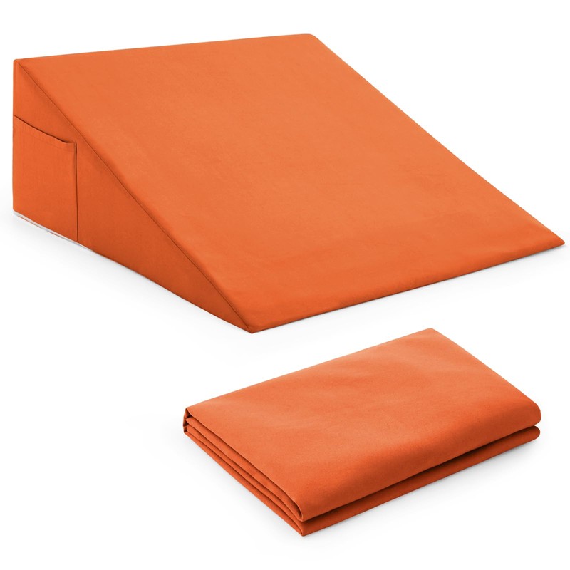 Horbaunal Burnt Orange Bed Wedge Pillow Cover with Zipper Design, Wedge Pillowcase Protector with Side Pocket for Storage, 26" L x 25" W x 7.5" H(Pillow Not Include)