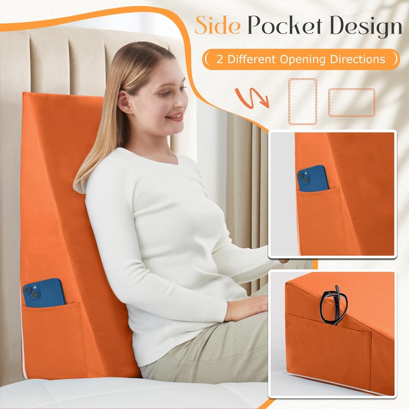 - Functional Design: Equipped with 2 different directions handy side pockets for essentials like glasses or remotes, our wedge pillow covers combine style with convenience, enhancing your relaxation experience