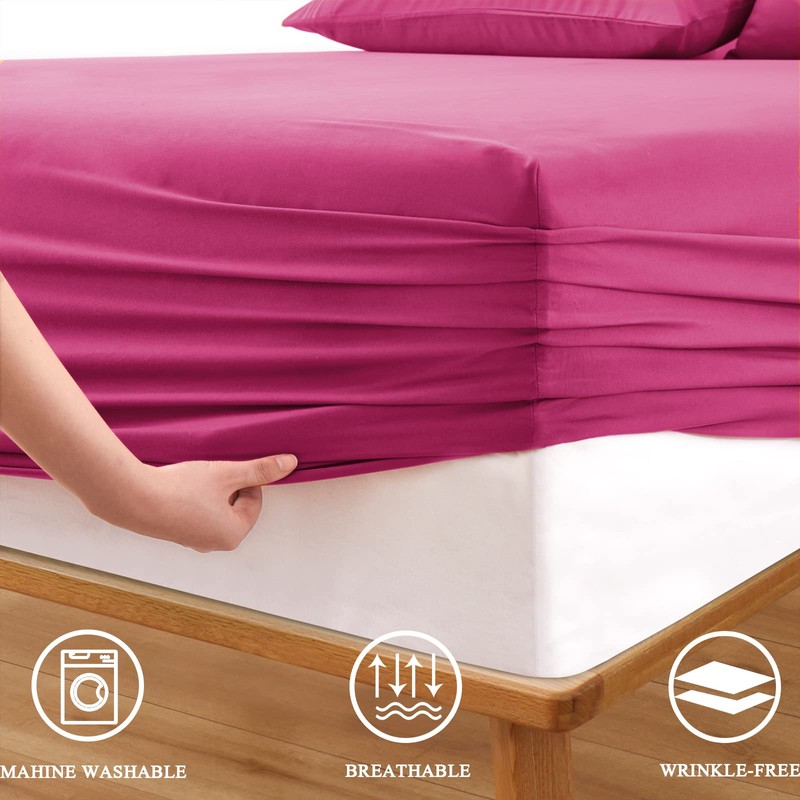 Horbaunal Extra Deep Pocket Full Fitted Sheet Only - Fits Up to 24 Inch Mattress - Luxury 1800 Thread Count - Microfiber Hot Pink Fitted Bed Sheet Full Size