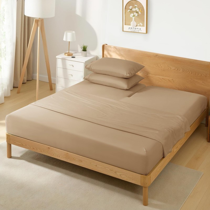 Horbaunal Taupe Split Head King Sheet Set - 4 Pieces Flex Top King Sheets for Adjustable Beds - Fits Mattress up to 16" Deep - Soft Microfiber Bed Sheets with 34" Split Flex Head