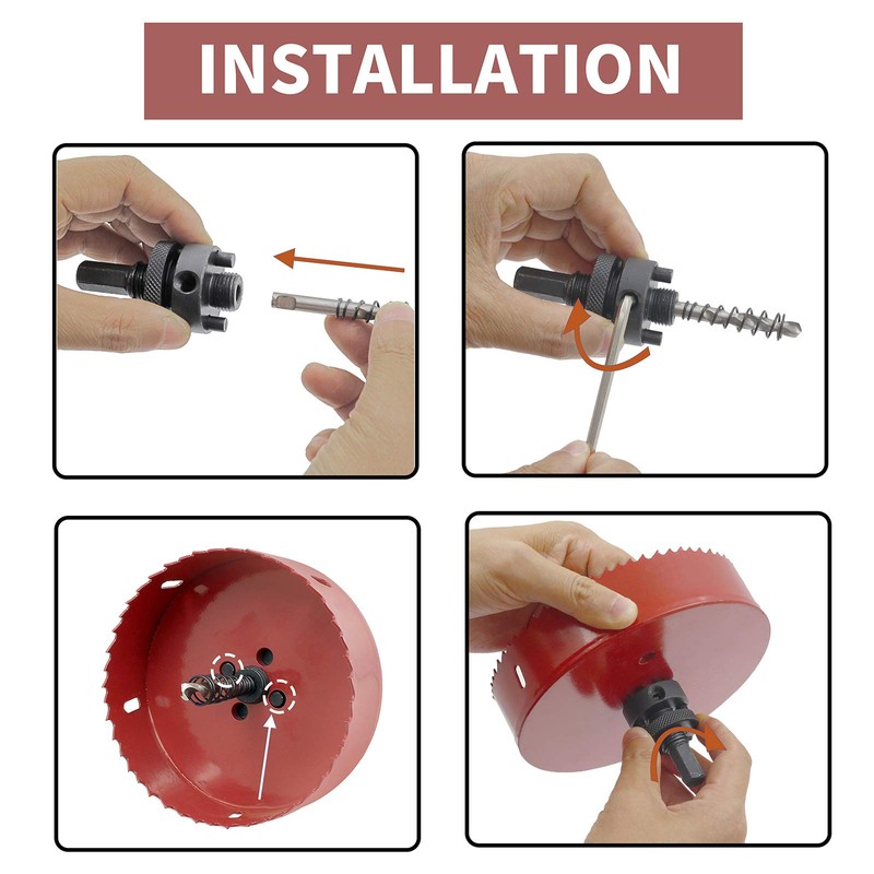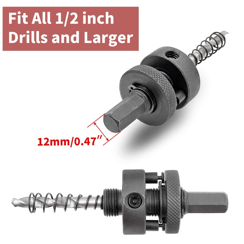 - Package Includes: 1 x 6.1" hole saw, 1 x 7/16" hole saw arbor, 1 x hex shank drill bit adapter, 1 x 1/10" L wrench, 1 x 1/6" L wrench, 2 x 6mm drill bit