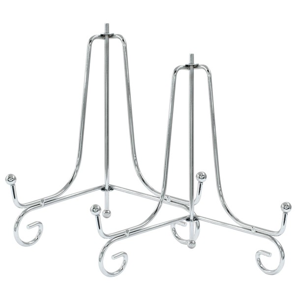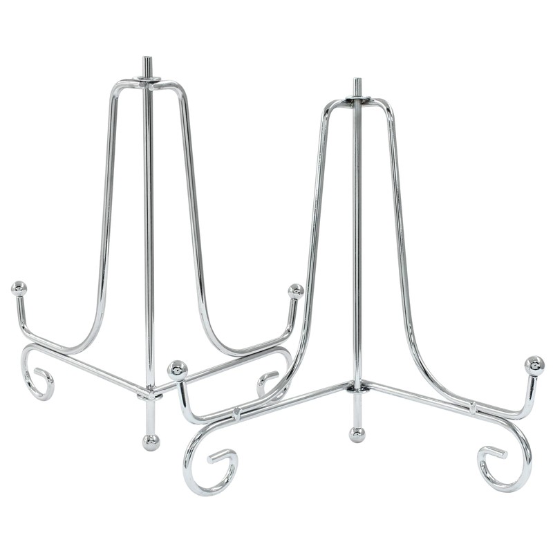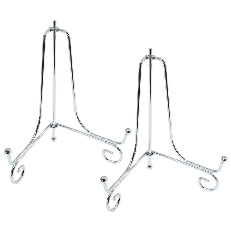 Hordion 2 Pack Plate Stand, 6 Inch Silver Iron Easel Photo Display Stand Plate Holder for Picture Frame Book Tabletop Art Platter