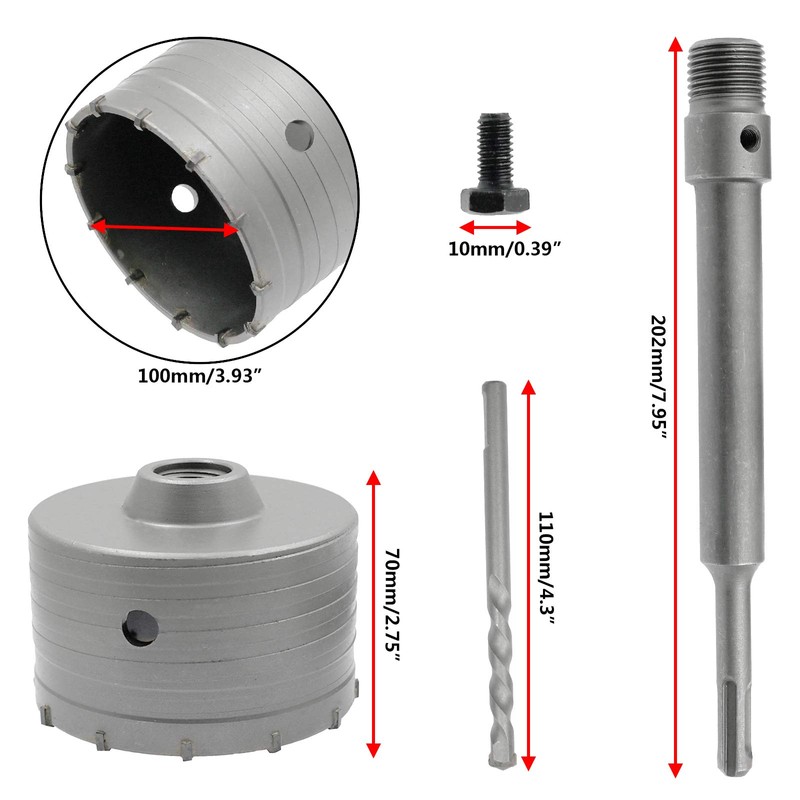 - Package Includes: 1 x 4 Inch/ 100mm hole saw cutter, 1 x 202mm connecting rod, 1 x 0.28" drill bit, 1 x screw