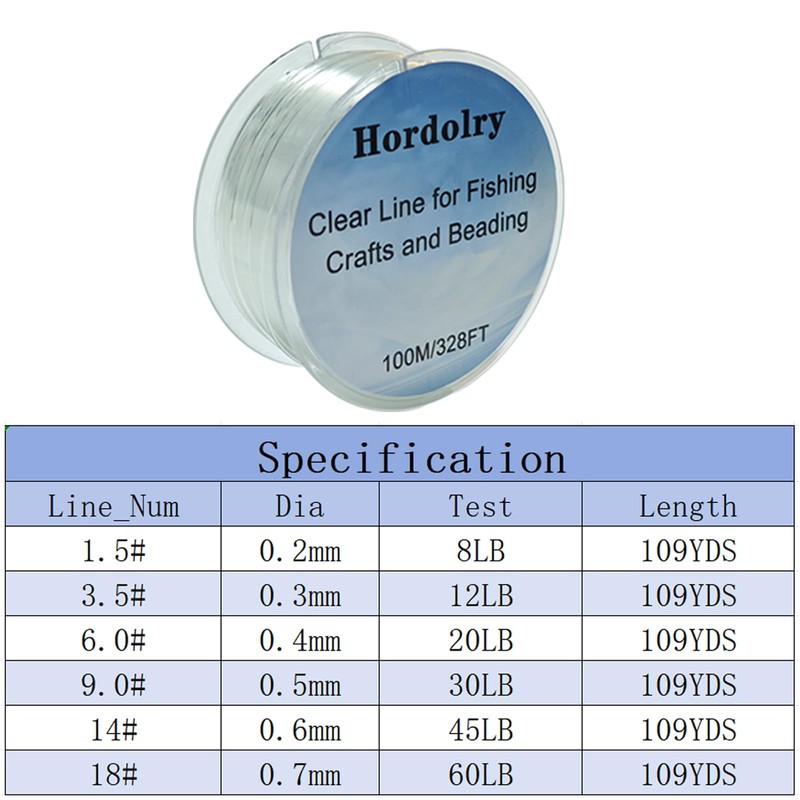 Hordolry fishing line is made of nylon, treated with advanced UV protection to prevent sun damage its smooth sruface and loew memorry desing ensure effortless knotting for secure serups in fishing or crafts, We offerd different diameters of fishing line (0.2mm-0.7mm) to meet your different scene needs