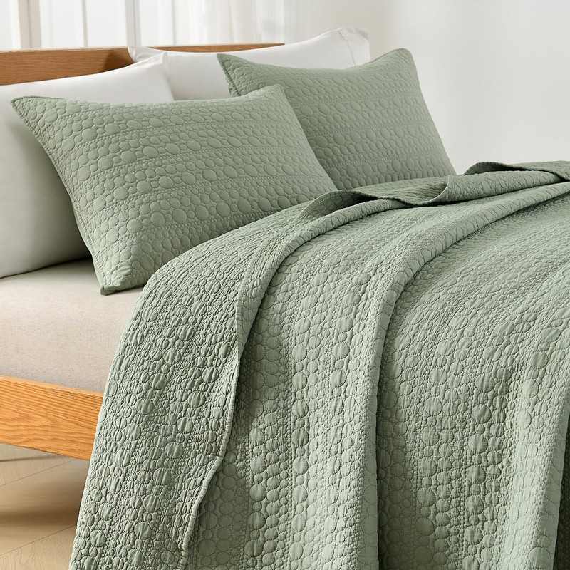 HORIMOTE HOME Quilt Set Queen Size Sage Green, Classic Geometric Spots Stitched Pattern, Stone-Washed Microfiber Chic Rustic Look, Ultra Soft Lightweight Quilted Bedspread for All Season, 3 Pieces