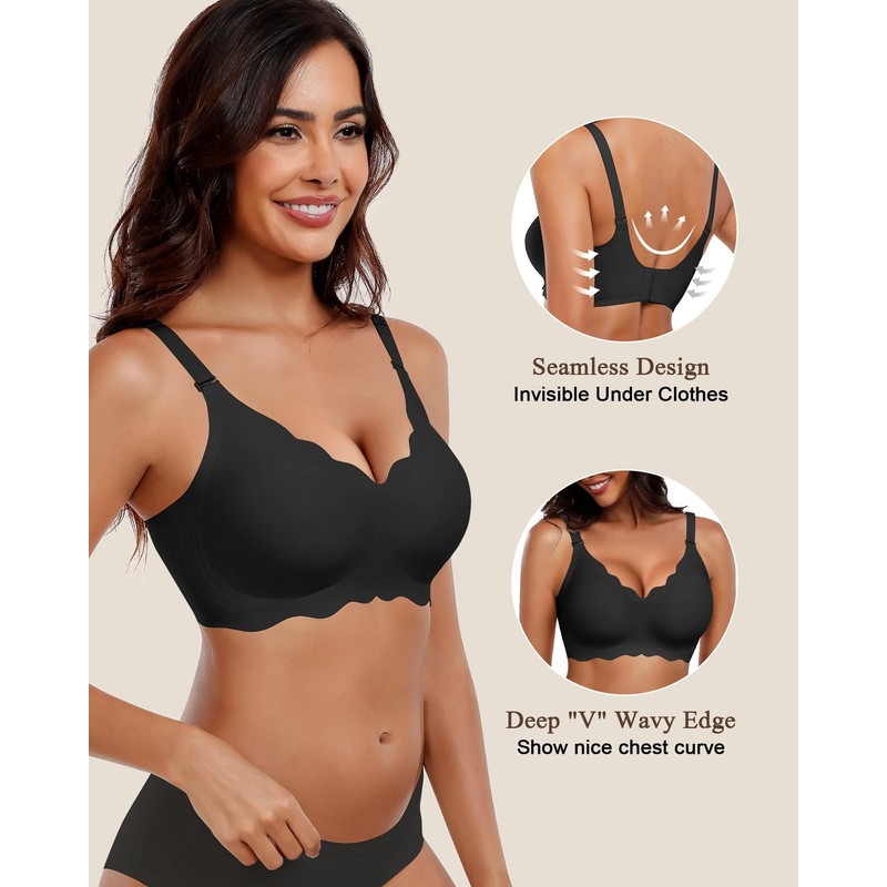- Unique V-neck Design:Our wireless soft support bra with petal shaped V-neck design can gather and lift the breasts, highlight the breast lines, and make your breasts straighter and rounder. 4-row back hooks can hide back fat and provide more support.