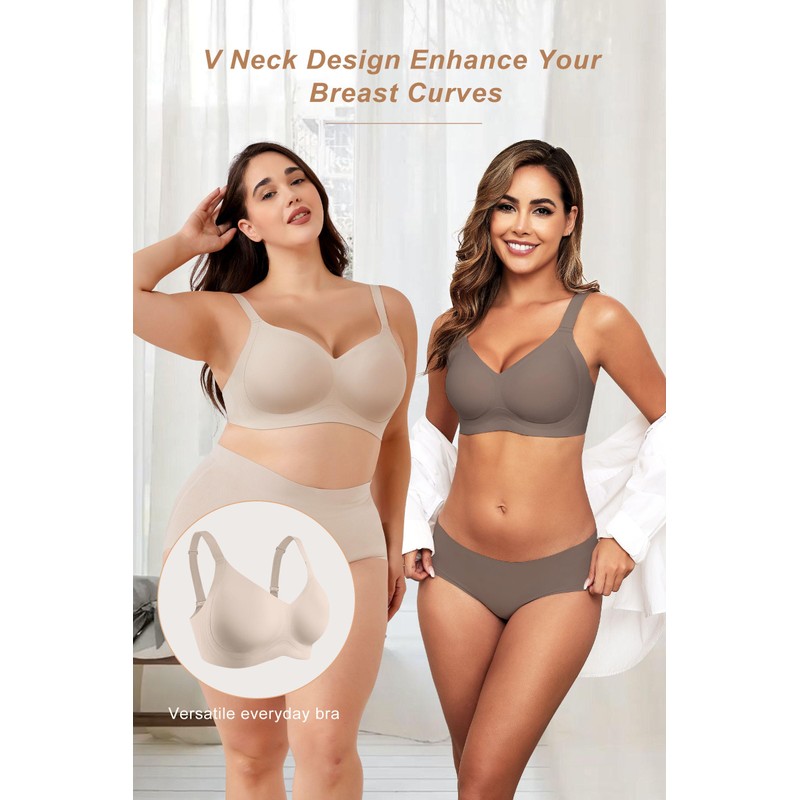 - 【V-Neck and U & X Back Design】Pair the women wireless bralette’s chic V-neck with a convertible U-back (crossable straps included) for trendy layering. Perfect under plunging necklines outfits. This full coverage bra's wider side circumference hugs your chest and wraps around your armpit fat, giving your body curves a smooth appearance within your clothes, while ensuring comfort and zero constriction.