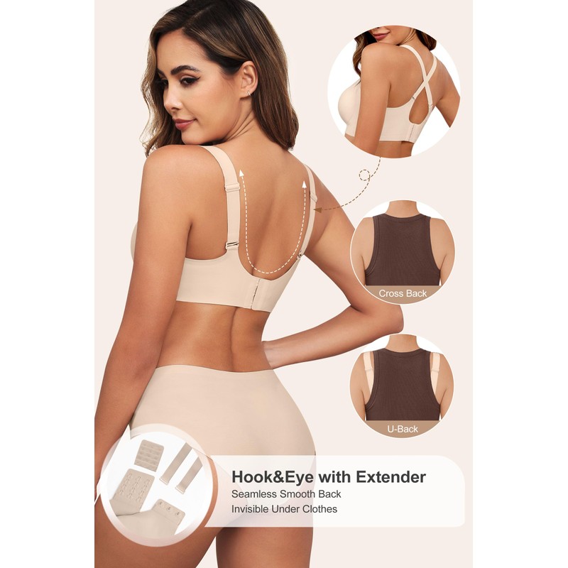 - 【Adjustable Back Closure& Non Slip Shoulder Straps】Our wirefree bras with fixed pads is machine washable, no need to worry about deformation or shift after wash. This no underwire everyday T shirt bra has adjustable 4rows of 3 eye hooks back closure for custom fit and easy to put on. Friendly to ladies of all shapes and sizes Lightly fixed bra pad is breathable and comfortable, does not deform after machine washing.