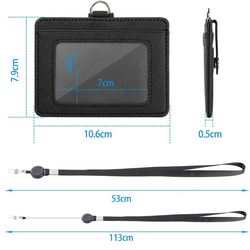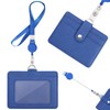 Horizontal ID Card Holder with Retractable Reel Strap, Neck Passcase, Coin Purse, Holds 3 Cards, Both Sides, Unisex (Blue)