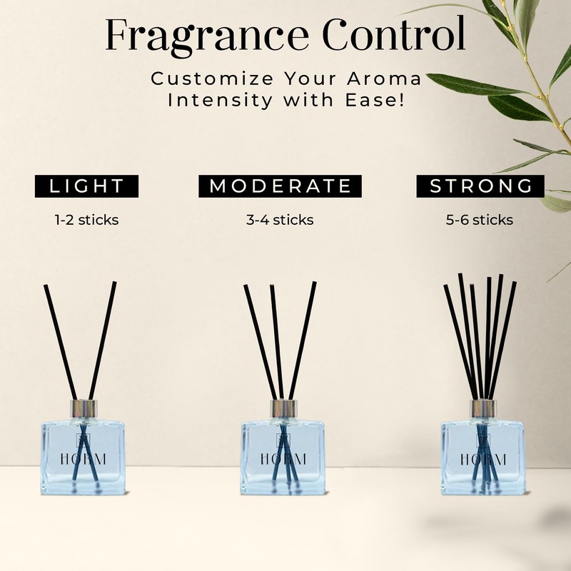 Fácil de usar: la comodidad se une a la elegancia. Comienza quitando la tapa y el tapón de la botella, luego inserta suavemente los palitos de lengüeta. Para ajustar la intensidad de la fragancia, simplemente gira los palos como desees. Utiliza 1-3 palos para un aroma sutil, 4-6 para un aroma moderado, y 7-9 para una fragancia robusta. Deja que el difusor funcione su magia, llenando naturalmente tu espacio con su delicioso aroma.