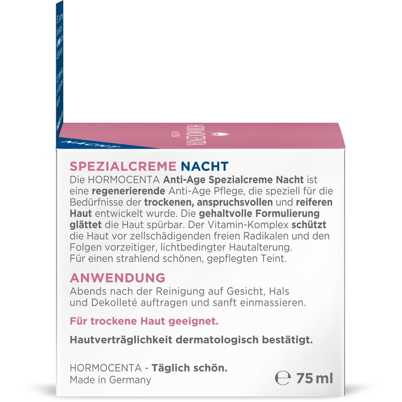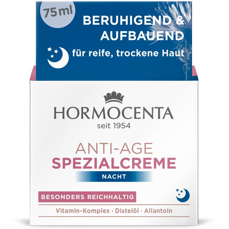 - Anti-ageing special cream night: the Hormocentta special night cream is a rich care specially developed for the needs of dry, demanding and mature skin. The rich formula noticeably smooths the skin.
